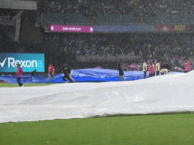 A long spell of rain started at around 3.10 pm, soon after the toss, with the play set to start at 3.25 pm. The ground staff rushed in with the covers as the downpour intensified. With the ground engulfed in near darkness, the rain continued for more than 30 minutes, losing its intensity slowly.