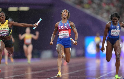 The U.S. also stormed to victory in the women's 4x400m relay, setting a championship record of 3:16.61, with Jamaica second and the Netherlands third.