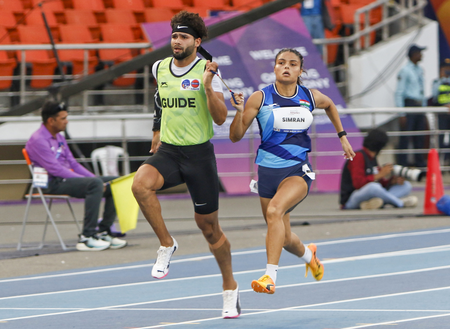 Saifi guided star para-athlete Simran Sharma to gold in women's 100m and silver in 200m in the T12 class at India 2025. The T12 class is for athletes with moderate visual impairment, who may compete with or without a guide.