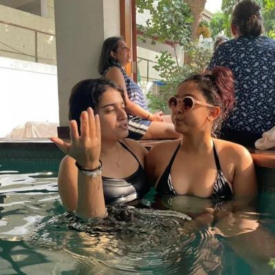 Ira Khan shared a couple of photos with her friends on Sunday. In the pictures, Ira is seen having a good time in a pool with her friends
