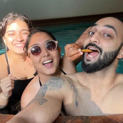 In the photos, a smiling Ira is seen posing for the camera, wearing her black and white swimsuit. In one picture, she is seen feeding a French fry to her friend.