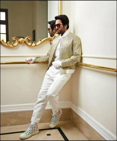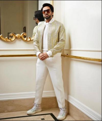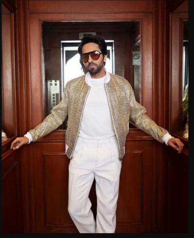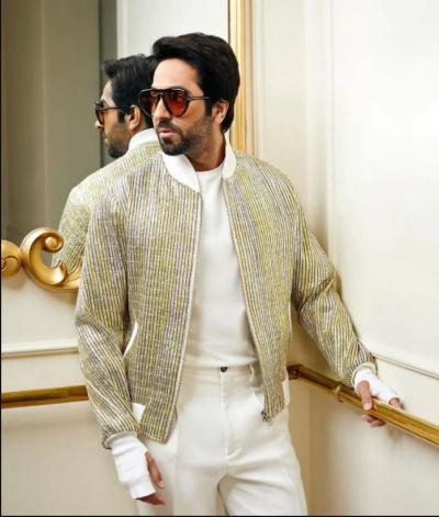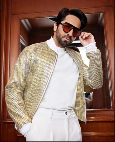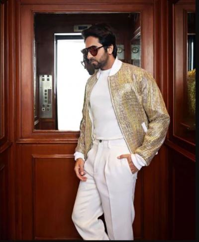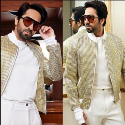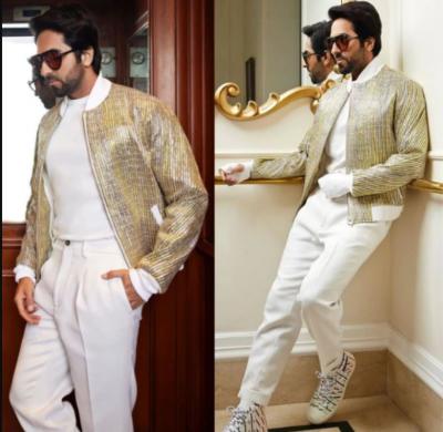 Recently, during an event, Ayushmann appeared in a super stylish gold and golden bomber jacket.