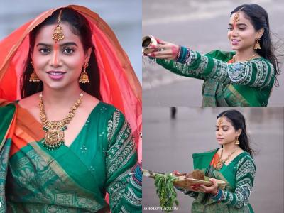 Bhojpuri actress Akshara Singh celebrated Chhath Puja with devotion, observing the Kharna ritual on the second day. Following a holy dip with her family and worship of the Sun God, she prepared puri in traditional attire. Her post, captioned "The austerity of fasting, the sweetness of jaggery and rice, this is Kharna," accompanied photos that quickly went viral, with fans admiring her simplicity and faith.