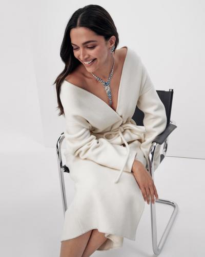 This white one-piece accentuates her grace and inner beauty, with her smile being the cherry on top. The actress adorned this mesmerizing attire from the Voyage Recommencé Collection.