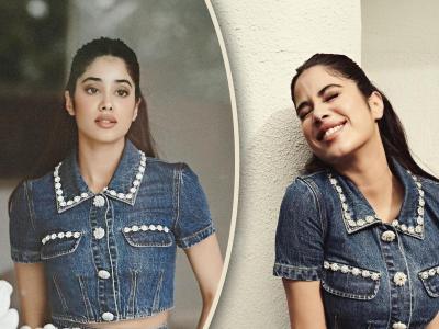 Janhvi Kapoor looked adorable in a denim coord set featuring a denim polo and a denim skirt. The coordinated outfit gave her a fresh and youthful look, perfect for any casual outing.