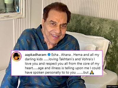“Esha , Ahana , Hema and all my darling kids… loving Takhtani’s and Vohra’s l love you and respect you all from the core of my heart… age and illness is telling upon me I could have spoken personally to to you… but,” Dharmendra wrote.