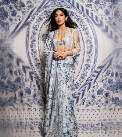 Stand out in a vibrant blue saree paired with a unique blouse. Bhumi’s style strikes a balance between traditional and trendy, making it ideal for a festive, yet fashion-forward look.