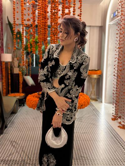 Embrace timeless elegance with a classic skirt and a jacket. Tahira’s look shows that simplicity with subtle sparkle can make a lasting impression, perfect for a sophisticated Diwali celebration.
