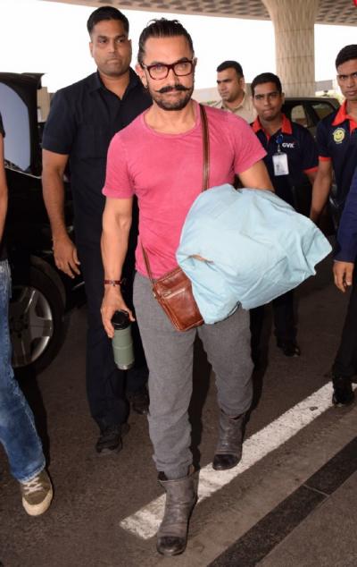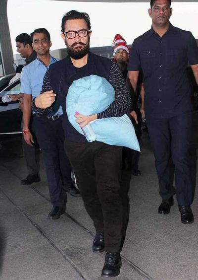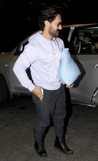 Yes, it's not Aamir's stylish look at the airport, but the pillow in his hand that grabs more attention. Yes, wherever Aamir goes, his pillow is with him.