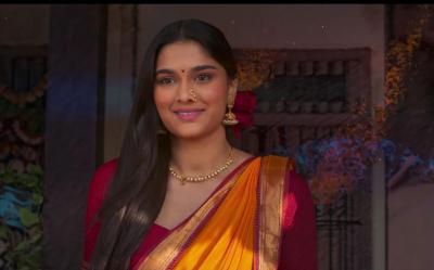 Saiee M Manjrekar exuded grace in a kesari Nauvari saree paired with a vibrant red blouse, highlighting her elegance and traditional aesthetics.