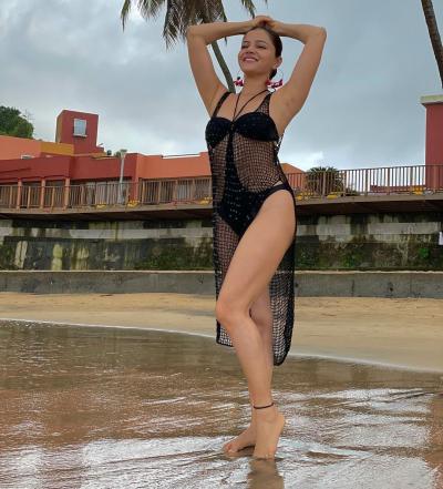 In these photos, Rubina is seen flaunting her hair in the sea in a black bikini. (photo instagram)