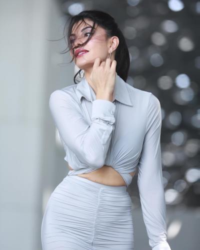 Jacqueline confidently displays her flawless physique in this outfit, effortlessly striking multiple poses that captivate attention and highlight her remarkable presence.