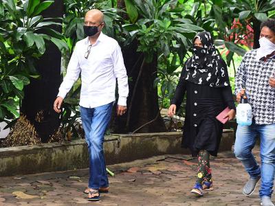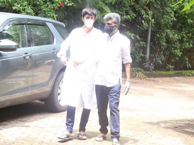 Naved Jaffery arrives with his family at his father actor Jagdeep's funeral in Mumbai.