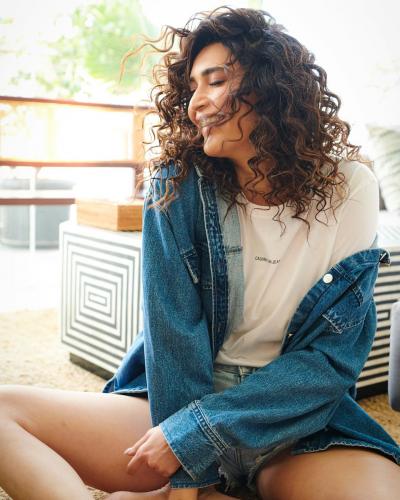 The photos shared by Karishma Tanna show her dressed in denim shorts, paired with a white top and a denim jacket, which completes her stylish outfit.