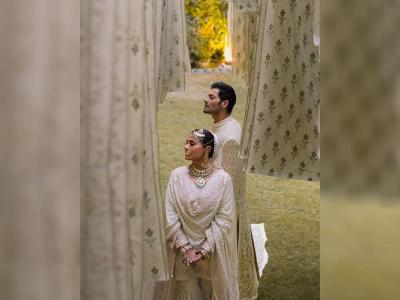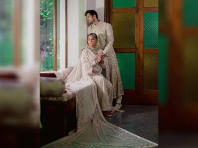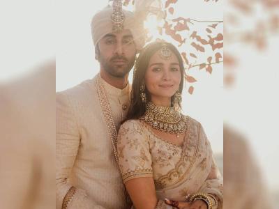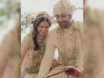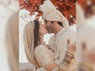 Alia Bhatt ditched the traditional red bridal accessories and opted for ivory with gold embroidery.