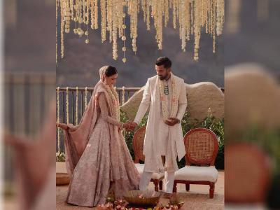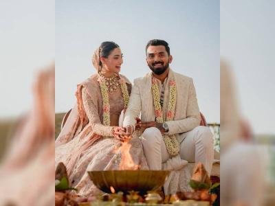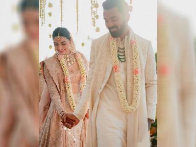 The pink zardozi lehenga with pearl highlighting lehenga won everyone's hearts at Athiya Shetty's intimate wedding.