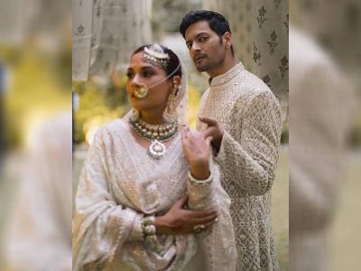 Richa Chadha wore Abu Jani Sandeep Khosla ki off-white chikankari kurti with jasper heavy kashidakari ka jua and border.