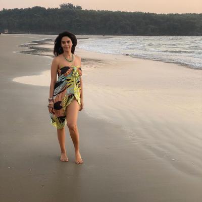 This time the diva has gone lit bit experimental she wore the scarf as beachwear and posed in this outfit while sitting on the seashore. Her pictures are going so viral on social media and fans are looking this look of the diva.