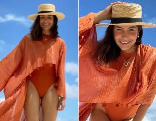 Anushka Sharma turns the heat in a orange swimsuit under Maldives sun