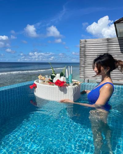 In the pictures, she flaunted her perfect figure in a blue-hued monokini, leaving her fans in awe of her. Soaking up the sun, Palak effortlessly added charm to her look with her infectious smile. The actress was seen enjoying a floating breakfast in a pool.