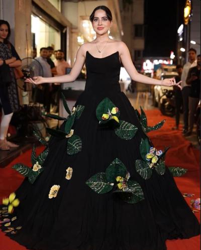 Uorfi Javed, known for her bold and unapologetic fashion picks, made a style statement in a sleeveless black gown, featuring 3D floral patterns. While Uorfi opted for a subtle overall look, the patterns added drama to the ensemble and grabbed the limelight for unconventionality.