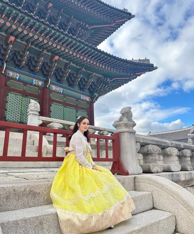 Sandeepa Dhar effortlessly blends tradition with contemporary charm as she graces the scene in a breathtaking hanbok. The delicate silhouette, intricate embroidery, and soft pastel hues highlight her ethereal beauty, making her look nothing short of a modern-day princess. With her poised demeanor and radiant glow, Sandeepa proves that cultural couture knows no boundaries.