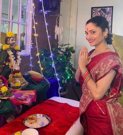 Ankita Lokhande looks stunning in a Maharashtrian saree.