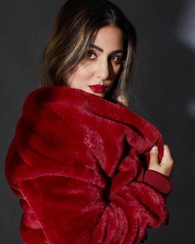 SEE PICS! Hina Khan looks gorgeous in red winter photoshoot