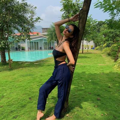 The actress seems to be having a good time on her mini vacation on the outskirts of Mumbai.