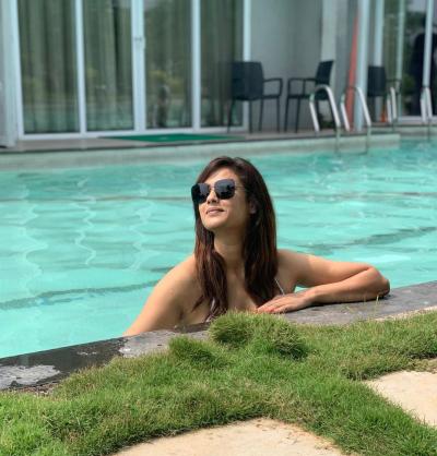 She posted a picture on Instagram where she is posing in a pool in a white swimwear.