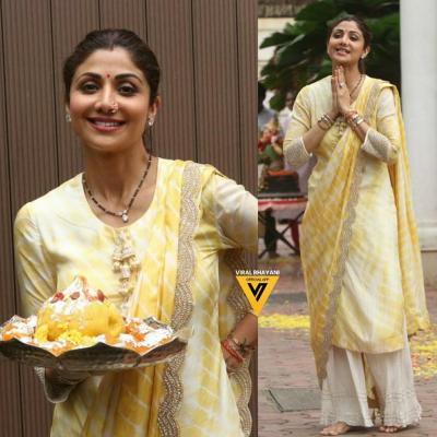 Shilpa, husband Raj Kundra, son Viaan and her mother-in-law were twinning in yellow on the occasion. Shilpa’s mother Sunanda was also present.