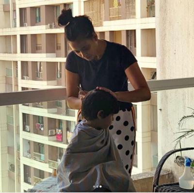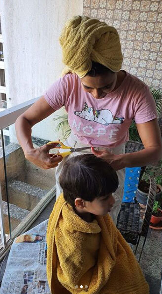 She posted a few photos on Instagram, and captioned them, "Always be yourself, unless you can be a Barber #nanhayatri #stayhome #haircut."