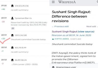 Even before Sushant Singh committed suicide, his name page on Wikipedia was edited at 8:59 p.m. Information about Sushant's suicide was updated at the same time.