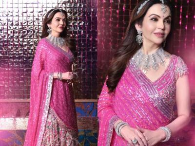 Nita Ambani's beautiful rose pink lehenga for Anant Radhika's sangeet ceremony.