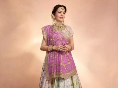 Nita Ambani chose a lehenga from Anamika Khanna's collection for the first pre-wedding ceremony and wore a colorful lehenga with intricate detailing for Anant Ambani's Lagan Lakhvanu.