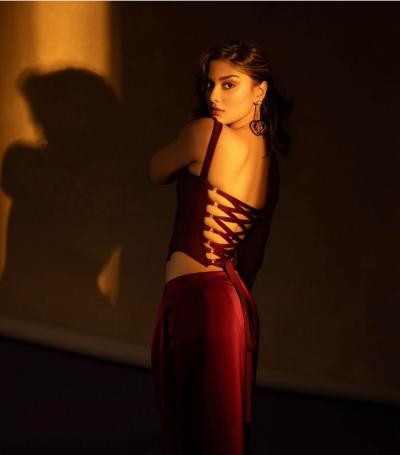 Red Co-ord Set: Saiee Manjrekar created a style statement in a bold red co-ord set featuring a detailed back. The actress looked nothing short of stunning in the striking ensemble. She accessorized her look with heavy drop earrings and opted for a full glam look.