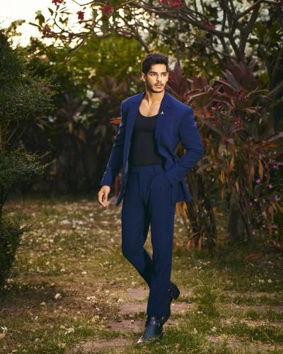Ishaan Khatter looked as suave as ever in a navy blue casual suit, which he paired with a navy blue jacket. The actor dished off major style goals to make contemporary fashion statements.