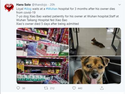 “They told me his owner, a pensioner, was admitted with the coronavirus. “Then he passed away, but Xiaobao didn’t know and just stayed in the hospital looking for him. “He never left the hospital. It was incredibly touching, and so loyal.”