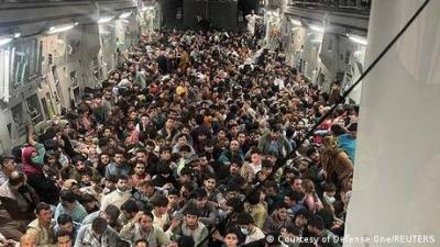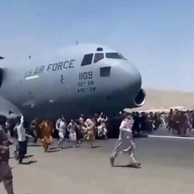Before the crew could offload the cargo, the aircraft was surrounded by hundreds of Afghan civilians who had breached the security perimete
