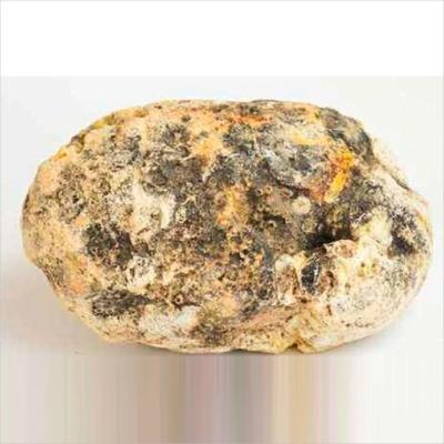 Ambergris is formed from a secretion of the bile duct in the intestines of the sperm whale. Most of the times it is found floating on the sea or washed up on coastlines however in some cases it is found in the abdomens of dead sperm whales too.