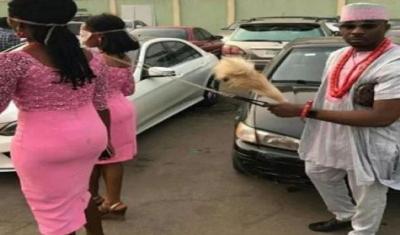 Popular Nigerian playboy shows up at friend's wedding with his 6 pregnant girlfriends