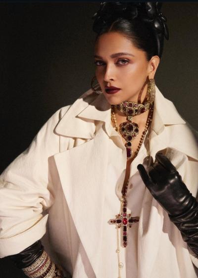 Deepika Padukone showed why she’s called the queen of extravagant fashion! Her monochromatic trench coat, paired with exquisite layered necklaces, including a statement ruby-and-diamond choker and a striking cross pendant, served a blend of structure and fluidity. She stacked matching bracelets over chic black gloves, enhancing the outfit’s sophisticated appeal. DP's Bold red lips and sleek hairstyle just turned out to be a chef’s kiss!