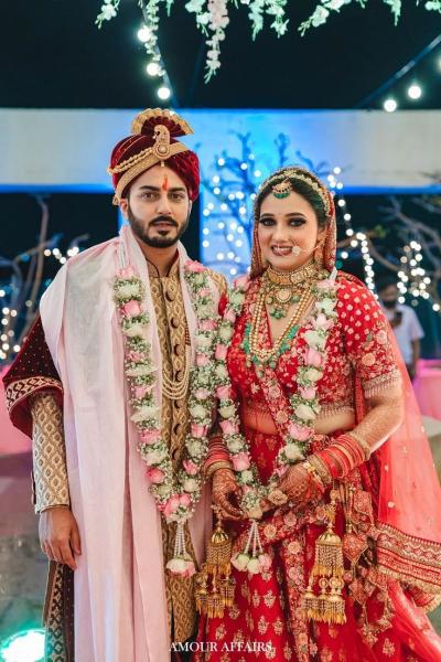 Some couples are also opting for garlands with zardozi work, pearls, or cardamom along with flowers, which gives a royal look.