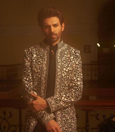 Kartik Aaryan’s Diwali look combines elegance with charm. He pairs a sleek black kurta with a white embroidered jacket, bringing sophistication to the festive season. The intricate embroidery adds a touch of tradition, perfect for Diwali gatherings. Kartik’s black-and-white combo is a classy yet stylish choice that’s sure to turn heads!