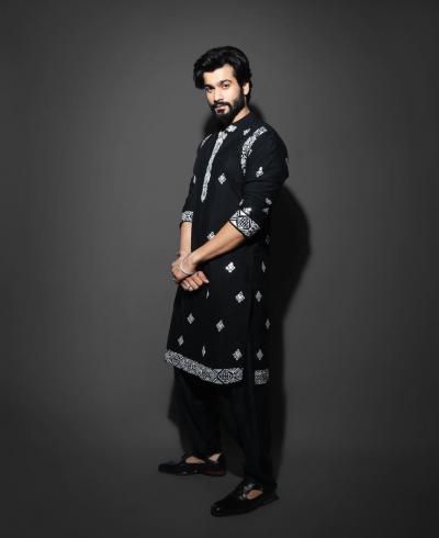Veer’s black kurta with silver sequins brings back early 2000s vibes with a modern twist, perfect for a Diwali night party. Paired with black pajamas and sleek black juttis, his outfit is both bold and nostalgic. The silver detailing adds just the right festive sparkle. It’s an eye-catching look for anyone wanting to stand out this Diwali!