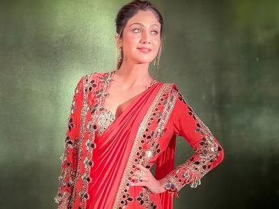Shilpa always try different indo-western outfits and in this look she is seen wearing saree over jacket.