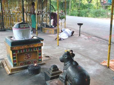 Shiva darshan should be done by placing left hand and right hand index finger and thumb on the horns of Nandi in the temple.