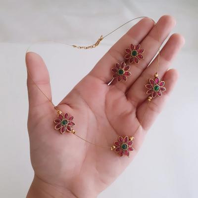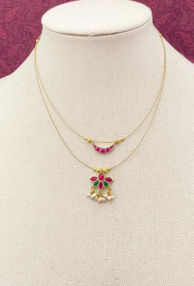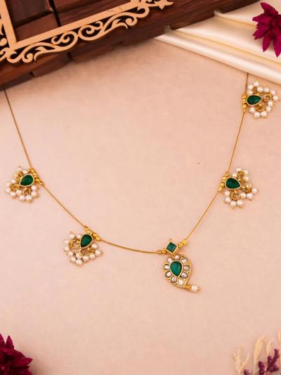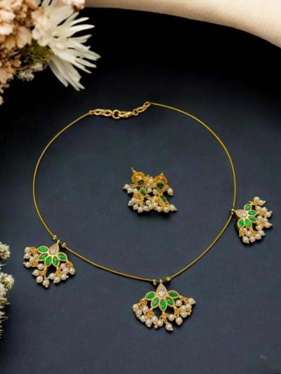 One important thing you should remember is keep this necklace away from water, perfume, chemicals and sweat. You can wear this green stone necklace on a yellow, pink or red saree or dress.
