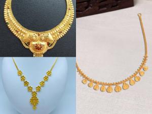 1 / 9Wedding season will start soon and girls will be in search of unique, trendy, fashionable necklace designs to wear. With high gold prices, consumers are inclined towards lightweight jewelry. That's why we have few necklace design options for you. 2 / 9This style of necklace is often described as simple gold flower chain necklace and is popular choice. 3 / 9Modern yet traditional necklace will be perfect for any casual party. 4 / 9The gold-toned necklace features a modern yet traditional collar design. Its chain, composed of linked, rounded elements, widens towards a prominent, teardrop-shaped central pendant.5 / 9This lightweight necklace features a wavy, linked chain and a teardrop pendant. 6 / 9For this kind of necklace you don't have to wait for any particular event or function as it can be wore daily 7 / 9If you are opting for some traditional Indian jewelry, then this can be best option. 8 / 9This beautiful design is unique due to the Leafe like feature. 9 / 9It can be worn as a statement piece or layered with other jewelry, suitable for any occasion.