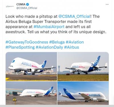 The images of Airbus Beluga landing at the Chhatrapati Shivaji Maharaj International Airport were shared by the airport’s official Twitter handle.